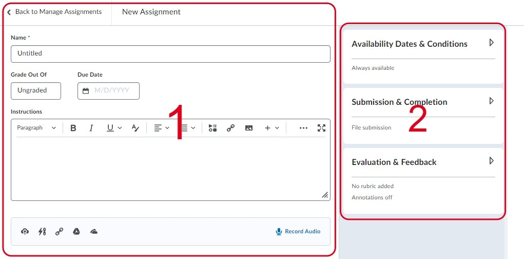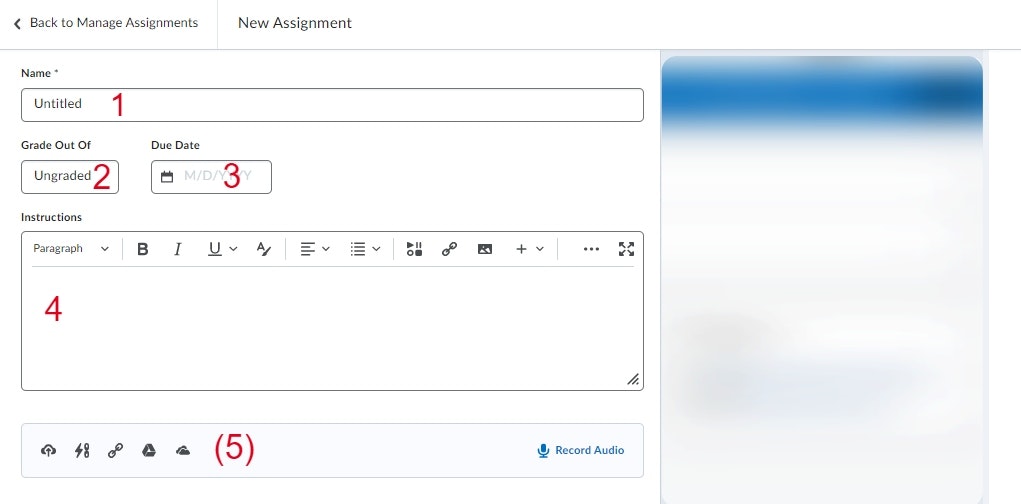 You are now on the page for creating your assignment.