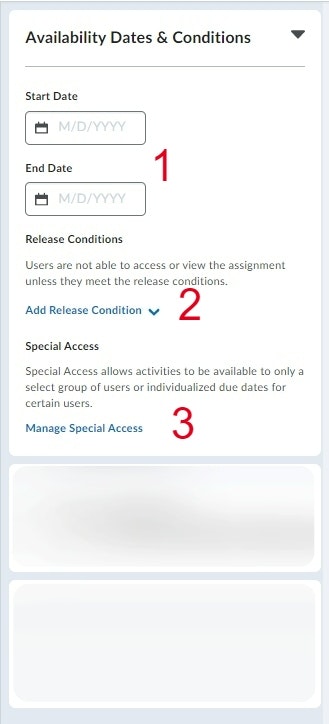 This area allows you to adjust the availability settings for your assignment.