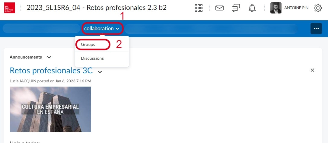 Once in the relevant course, on the navigation bar: