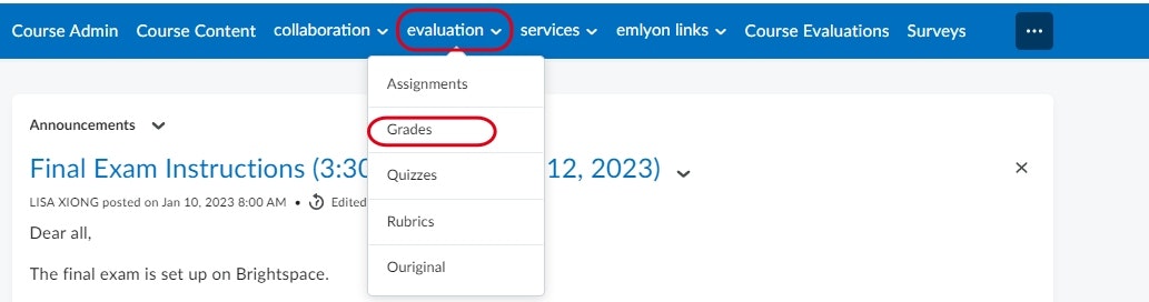 Then in the navigation bar, click on Evaluation , then, Grades