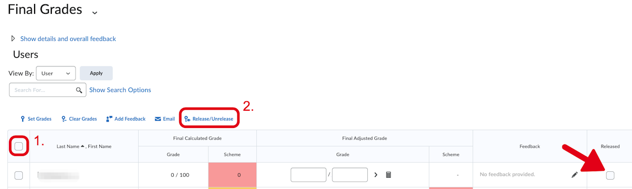 The grades will then move from the "Final Calculated Grade" column to "Final Adjusted Grade".