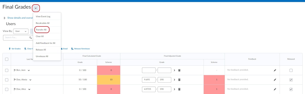 And there you have it! You have transferred the grades from the calculated final grades to the adjusted final grades!