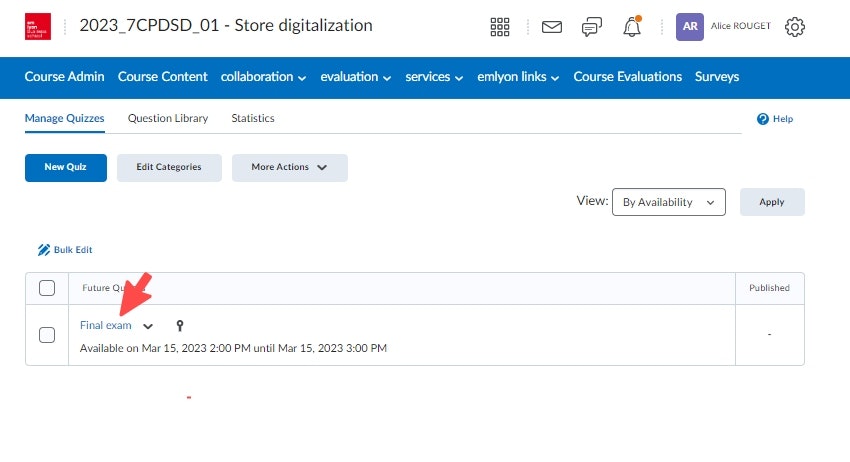 Click on Evaluation > Quizzes