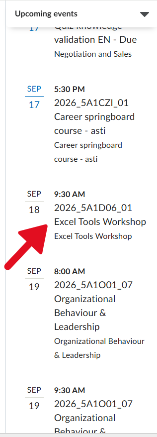 Access the schedule which is located via the widget on the right or after the announcements in the center of the page.