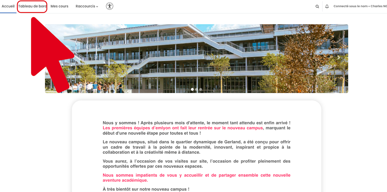 Rendez-vous sur votre tableau de bord learn.em-lyon.com
