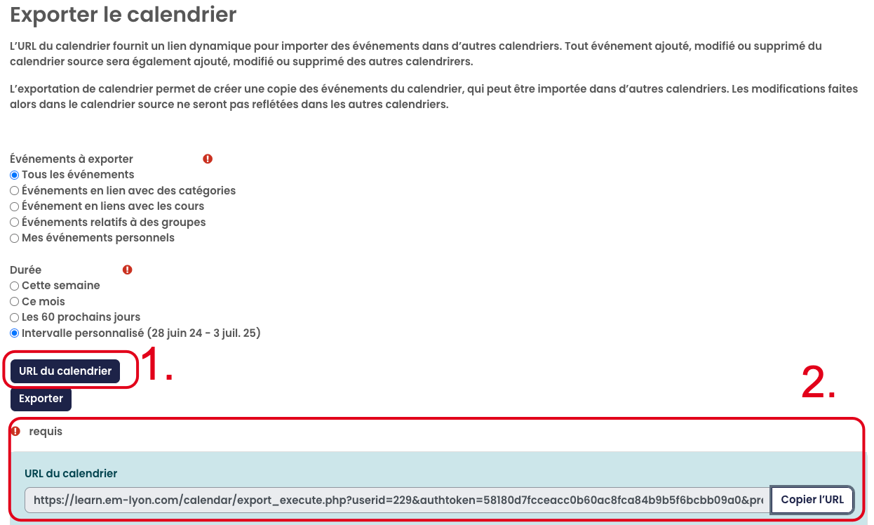 Copiez cette URL puis ajoutez-là dans votre service de calendrier préféré.